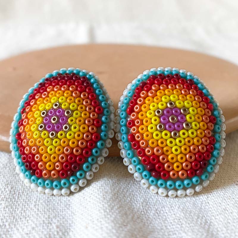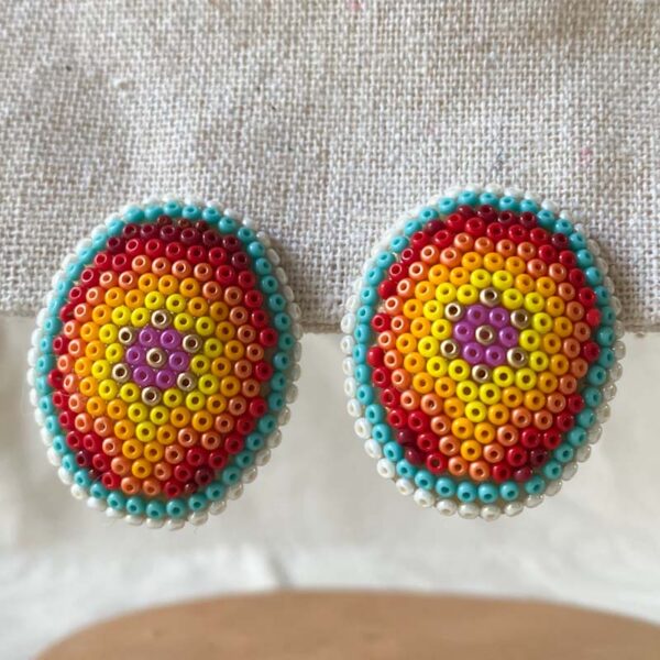 Base de acero inoxidable decorado con chaquiras por artesanos de Nayarit