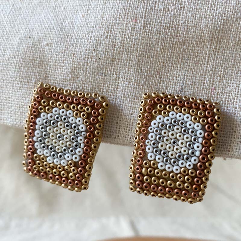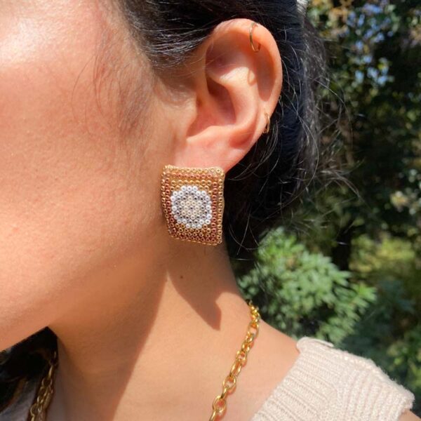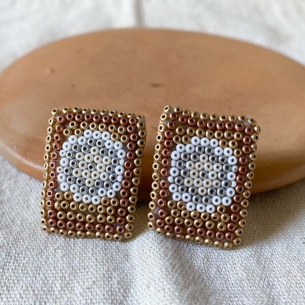 Base de acero inoxidable decorado con chaquiras por artesanos de Nayarit
