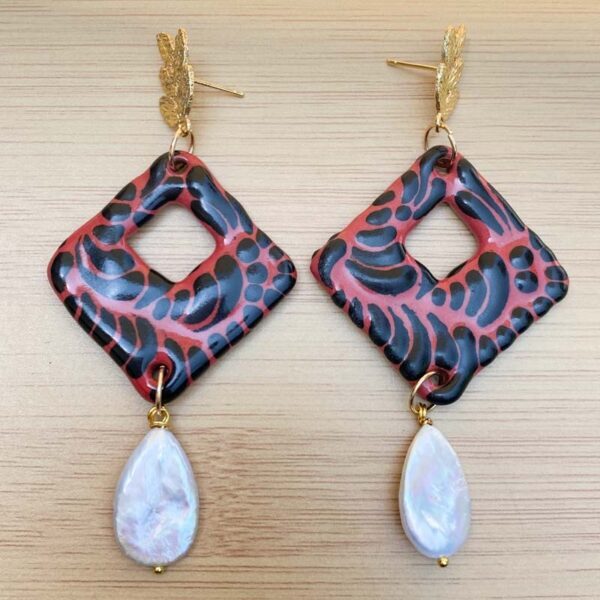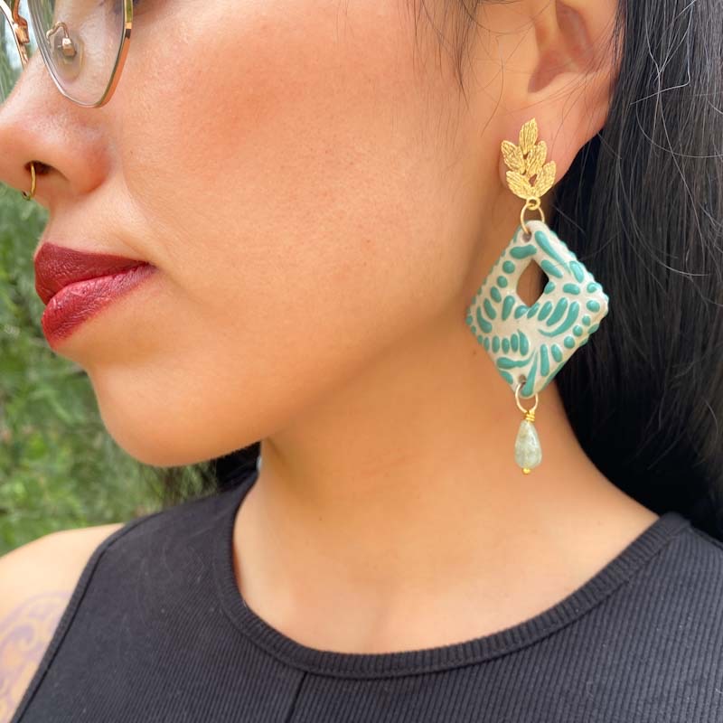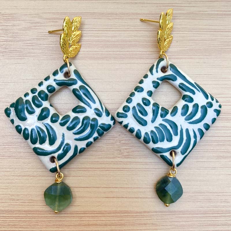 talavera y chapa de oro. largo 8cm.