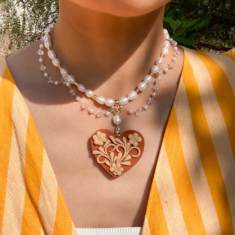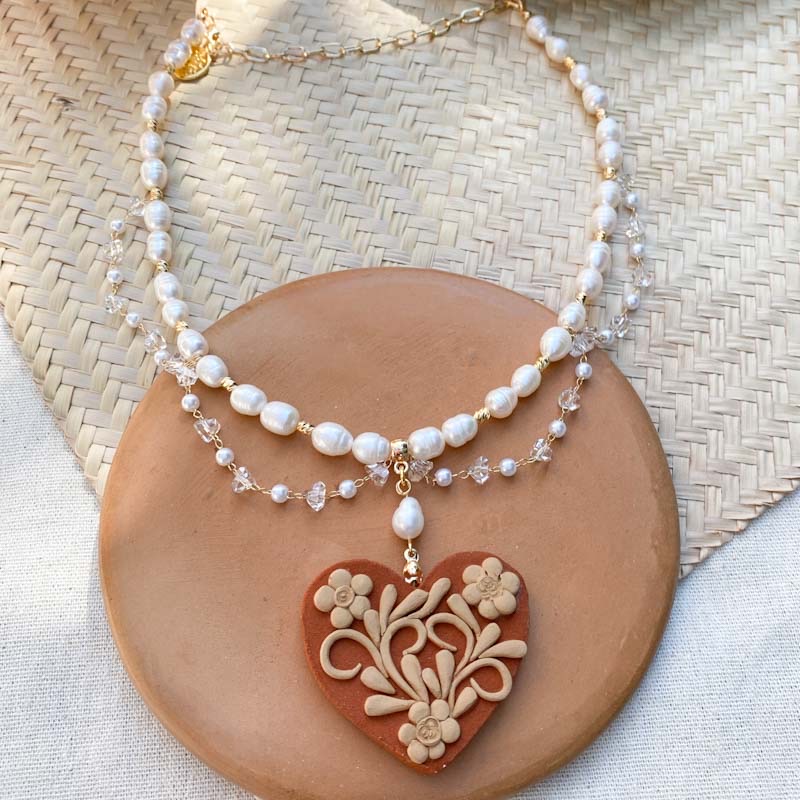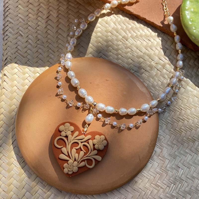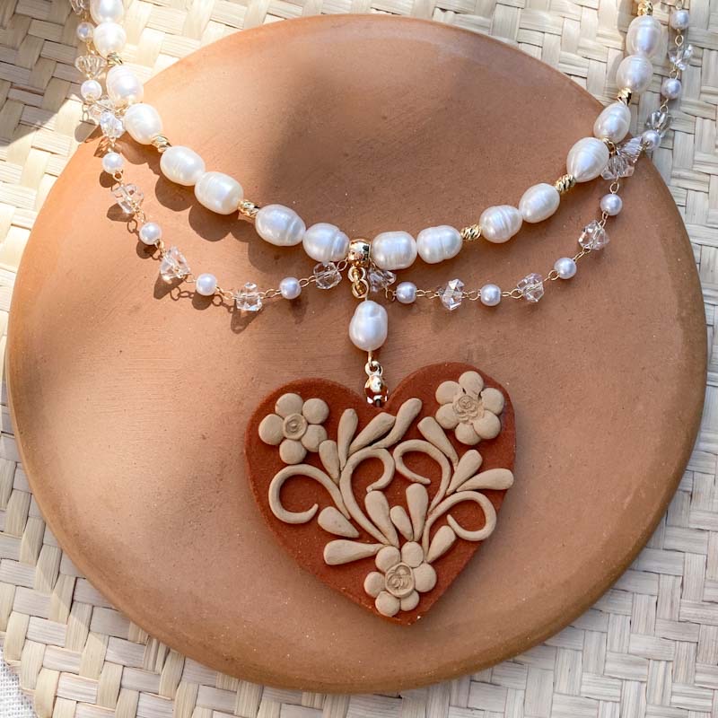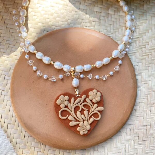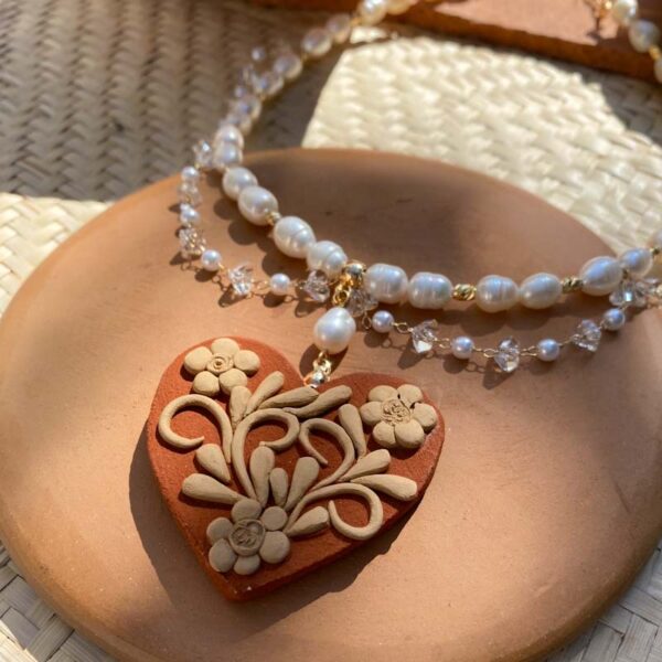 Corazon de barro natural de Santa María Atzompa, Oaxaca, México 4cm