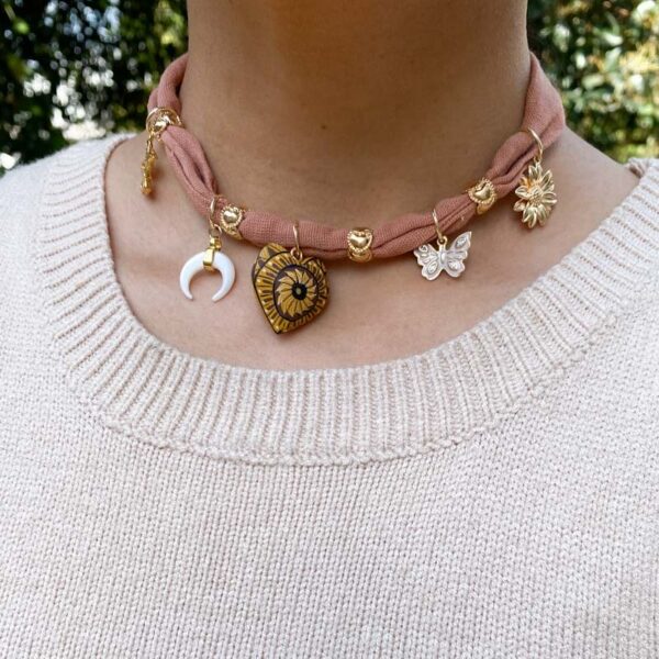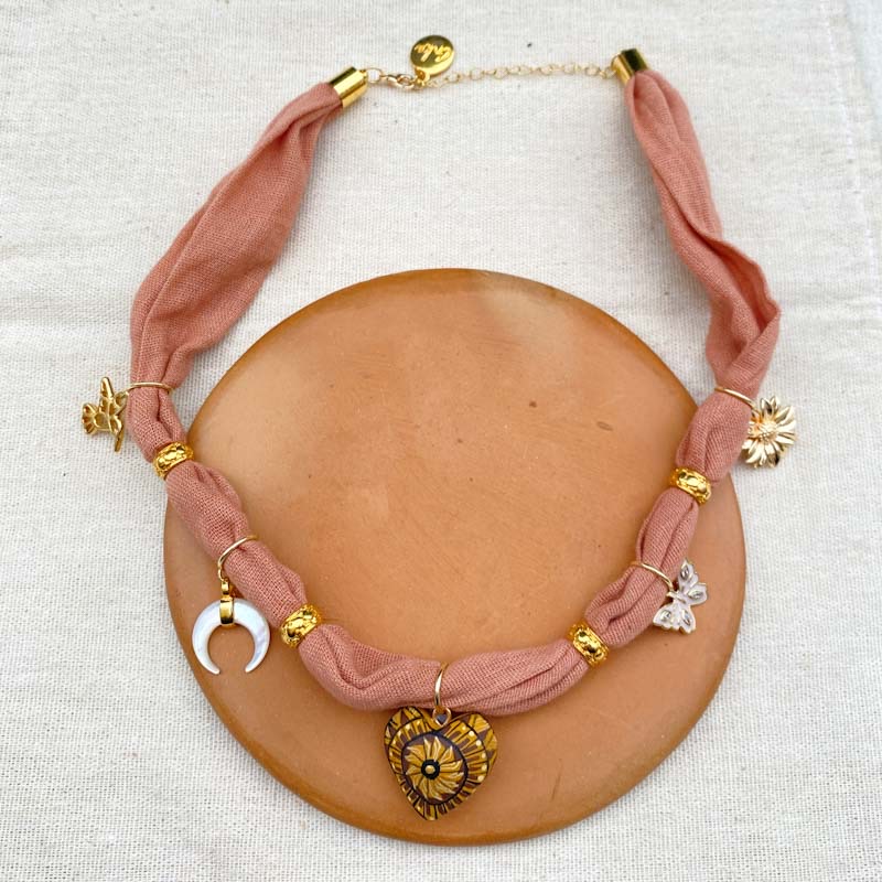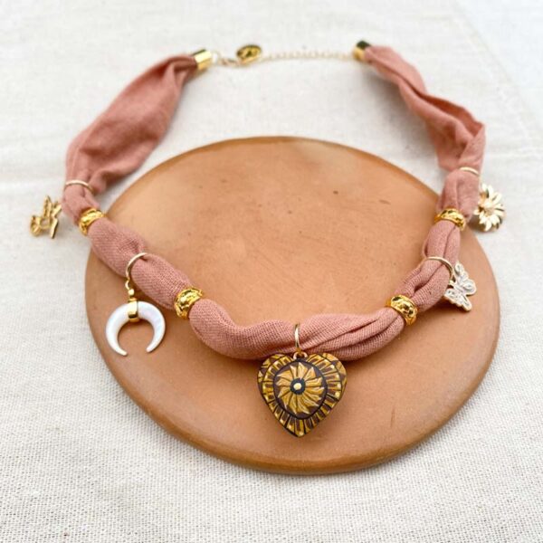 Este collar fue teñido con copal y procesos artesanales por mujeres zapotecas y nahuas, respetando usos y costumbres de cada comunidad