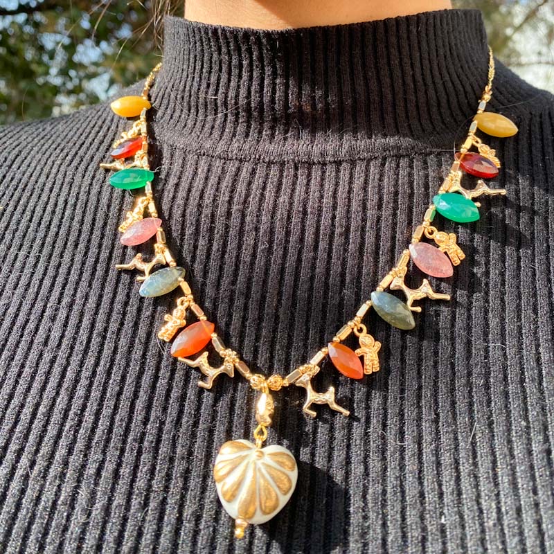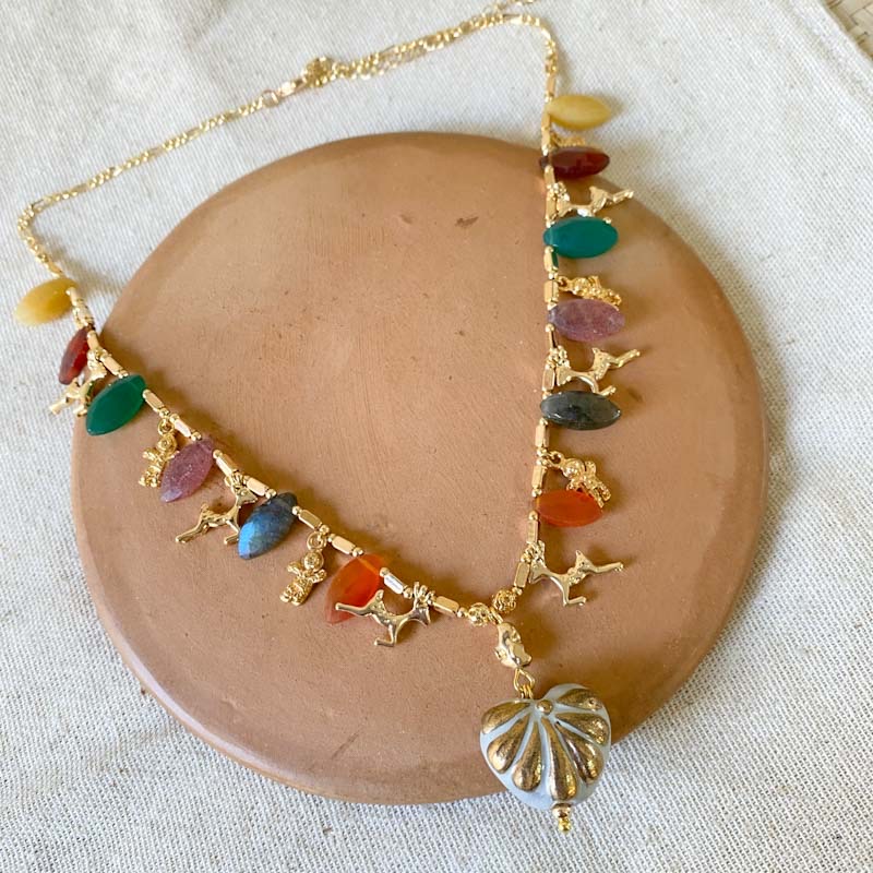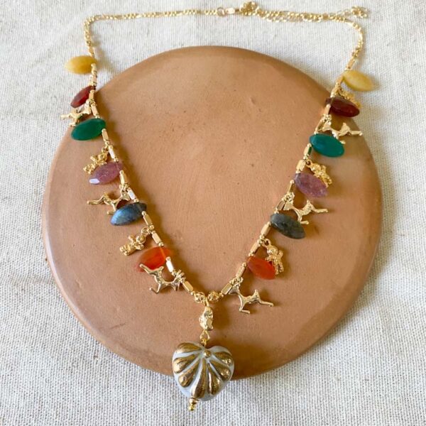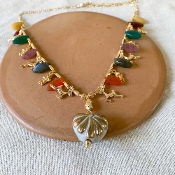 Talavera dorada con complementos en chapa de oro y piedras naturales