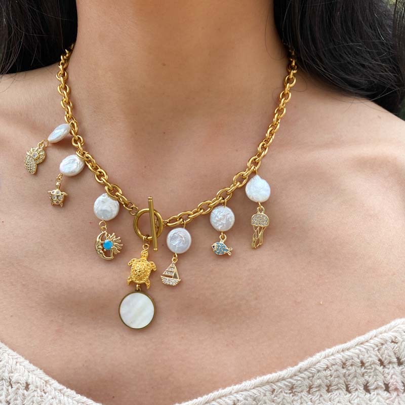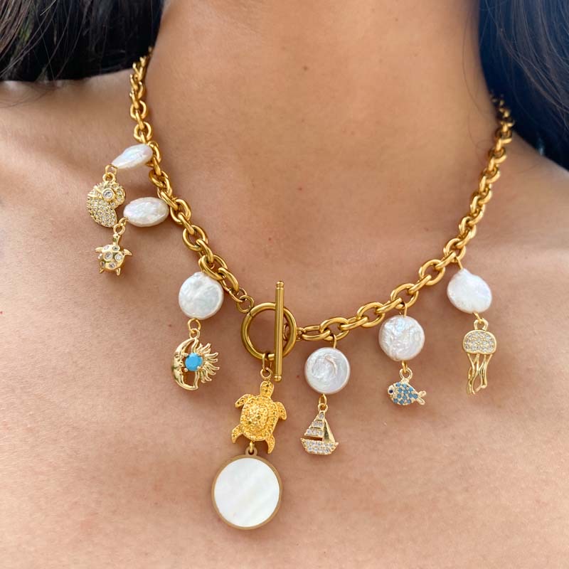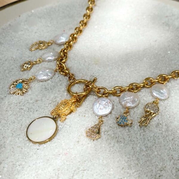 Dijes en chapa de oro con circonias