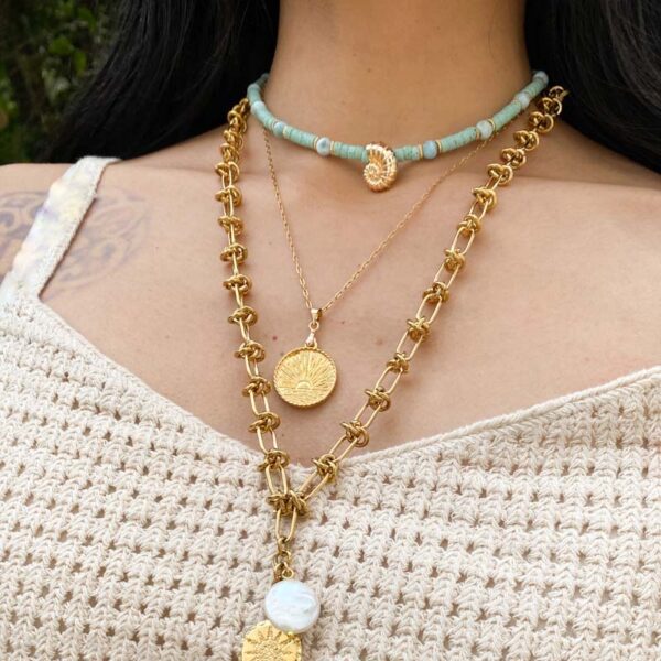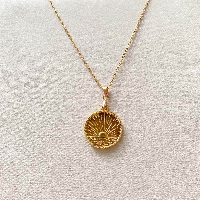 Collar sol: Cadena de acero inoxidable y dije de chapa de oro. Largo 45cm