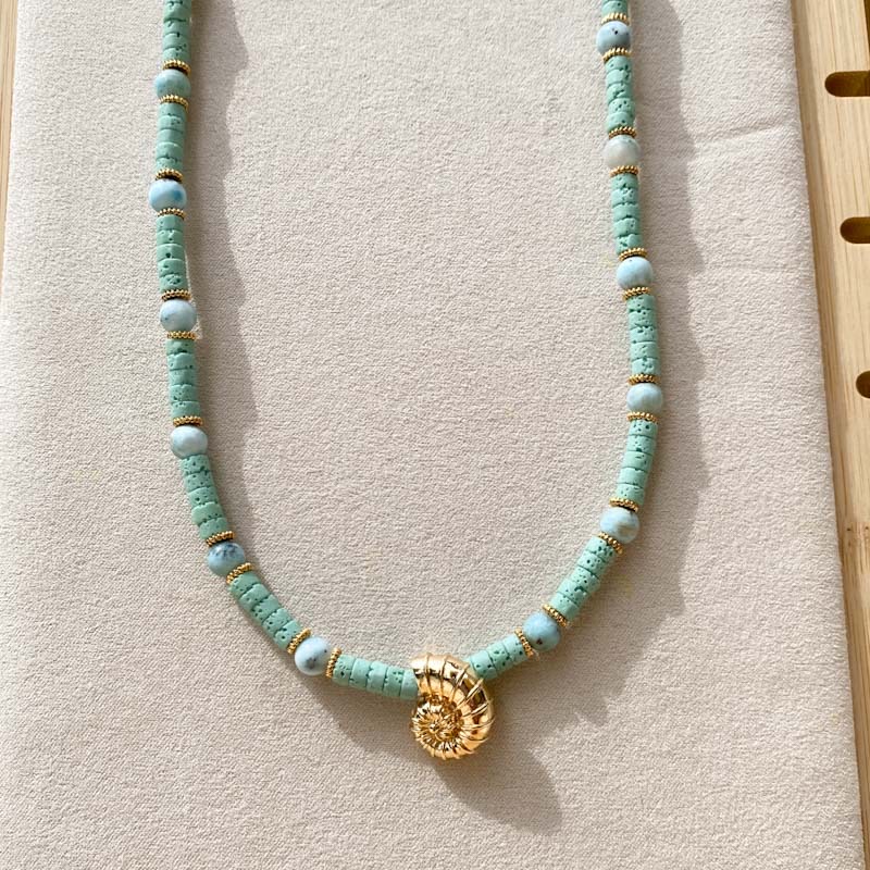 Gargantilla: Pierda volcánica, Marimar y chapa de oro. Largo 35cm